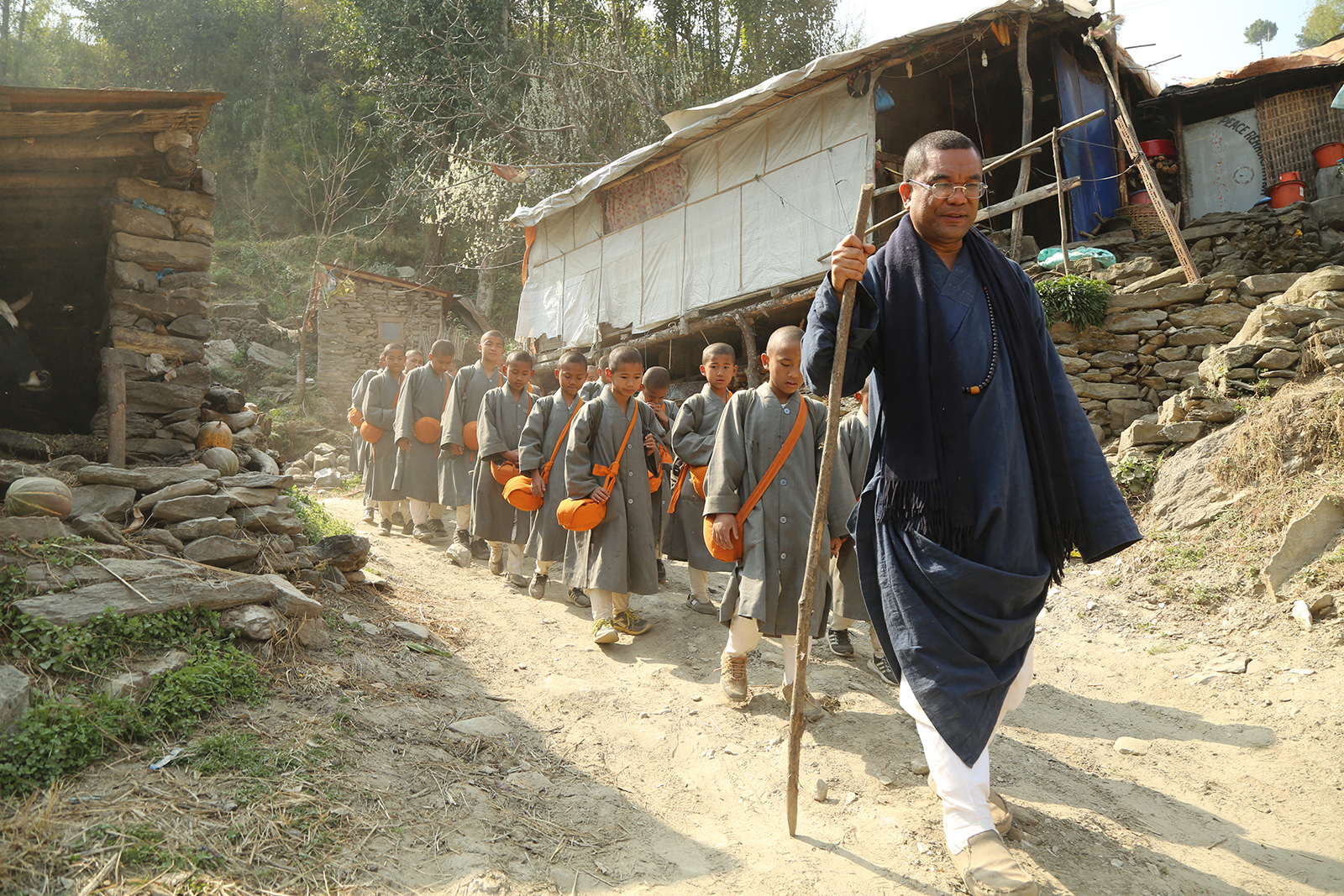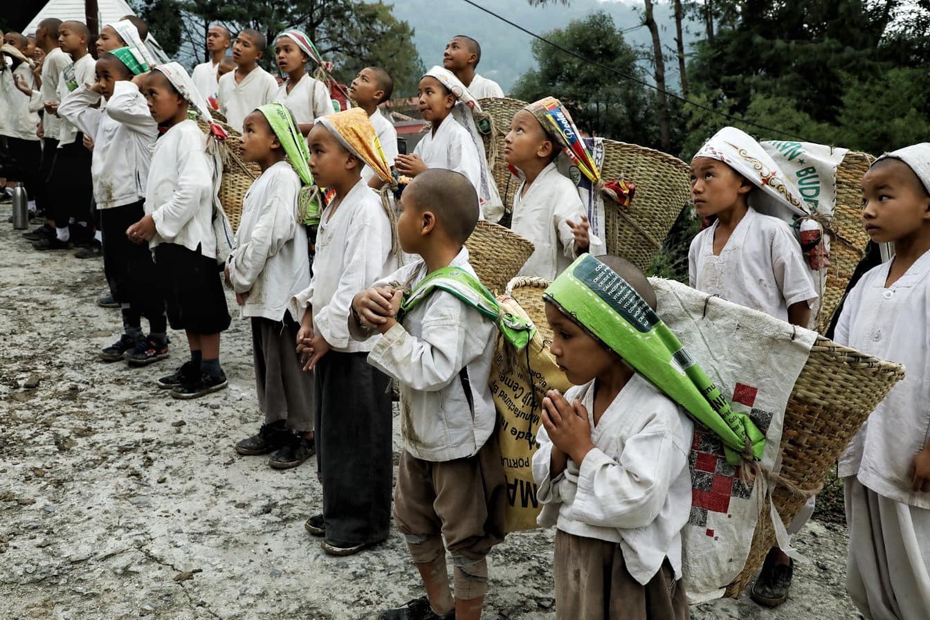 目前我們有24位沙彌,總共招生三梯次,最久的已經待了七年,最大的18歲,最小的7歲。他們大部分都是來自喜馬拉雅山區的孩子,生活比較艱苦,因為父母對佛教有多一點的瞭解,所以願意讓他們來出家。這些孩子並不是每個都父母健全,有些可能雙親都不在,也有父母離異或是遠赴外國打工,因為尼泊爾少有工業發展,大部分勞工都會選擇到外地求職。